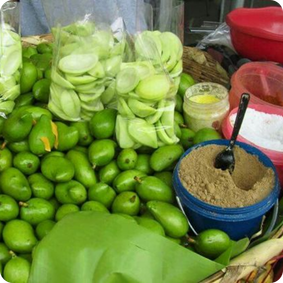 El mango verde con limón, sal y pepita.
